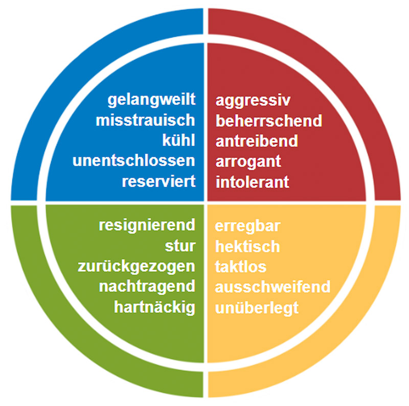 Immer wiederkehrende menschliche Verhaltensweisen, so genannte „typische“ Verhaltensweisen, lassen sich mit dem Insight Discovery® Modell in vier übergeordnete „Farbtypen“ einteilen: Blau, grün, gelb und rot.