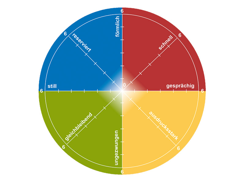Jede der vier Farben steht für bestimmte Verhaltenspräferenzen, wie z.B. rationales vs. emotionales, introvertiertes vs. extravertiertes Handeln, Kopf vs. Herz gesteuert. Mit dieser farblichen Analyse gelingt so ein einfacher, aber ganzheitlicher Einblick in die bewussten und weniger bewussten persönlichkeitsbezogenen Merkmale und macht sichtbar, warum Menschen sich unterschiedlich verhalten. Das Farb-Prinzip funktioniert unabhängig von Nationalität, Herkunft oder Gesellschaftsstand. Es bedient kein Schubladendenken, sondern gibt Aufschluss zu der Bandbreite persönlicher Verhaltenspräferenzen.